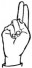 На ћирилици написано БУДИМИР МАНДИЋ састоји се из 13 слова [?]. Исписано ћириличном једноручном азбуком за глувонеме: